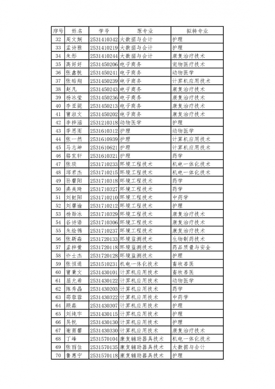 转专业公示